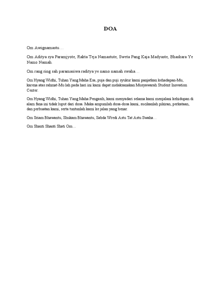 الَّلهمَّ اقْسِم لَنَا مِنْ خَشْيَتِكَ مَا تحُولُ بِه بَيْنَنَا وبَينَ. Jakarta, november 2013 ttd dr. Jul 01, 2013 · naskah doa pembukaan. Doa acara musyawarah masyarakat desa. Aug 07, 2017 · saat mengucapkan doa harus di resapi dan di maknai serta memantapkan hari.